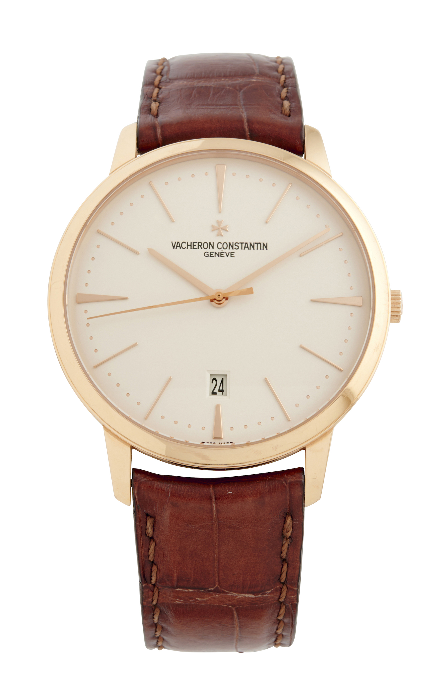 Closure: Vacheron Constantin brown leather strap and 18ct pink gold buckle