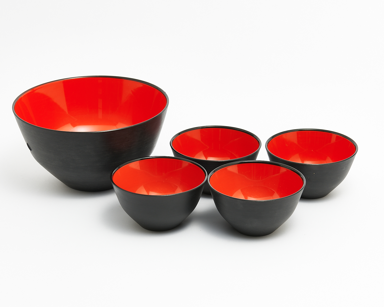 A SET OF FIVE MID-CENTURY SWEDISH MELAMINE BOWLS BY SIGVARD BERNADOTTE FOR HUSQVARNA DIA.22CM, LEONARD JOEL LOCAL DELIVERY: SMALL
