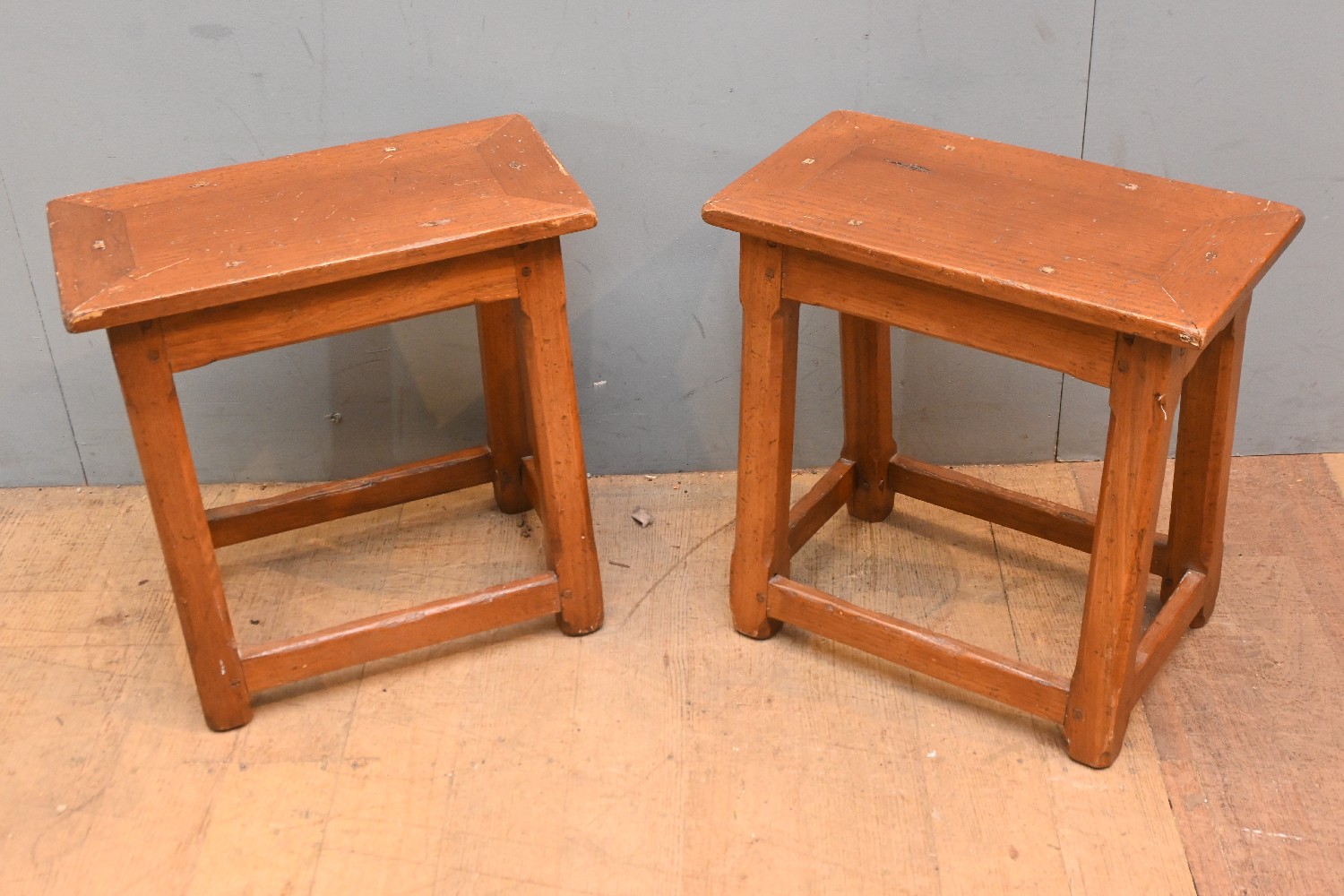 A PAIR OF PROVINCIAL GEORGE III-STYLE HARDWOOD JOINT STOOLS (A/F) (46H X 46W X 24D CM) (LEONARD JOEL DELIVERY SIZE: LARGE)