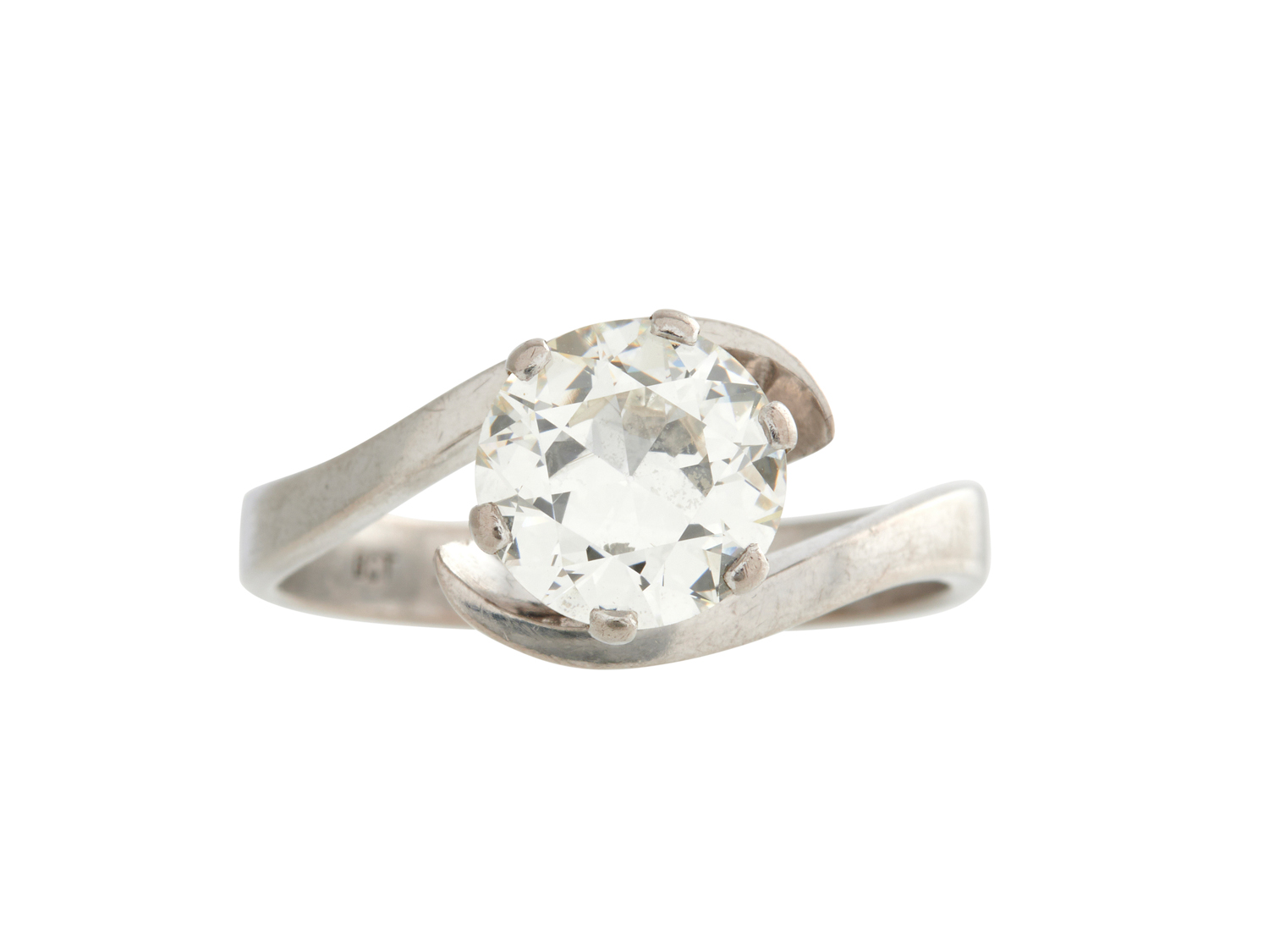 Claw-set with a transition-cut diamond weighing approximately 1.80 carats, size R 1/2 .