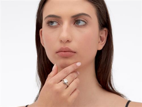 Diamond approximately K-L colour, VS2 clarity as graded within the confines of the mount