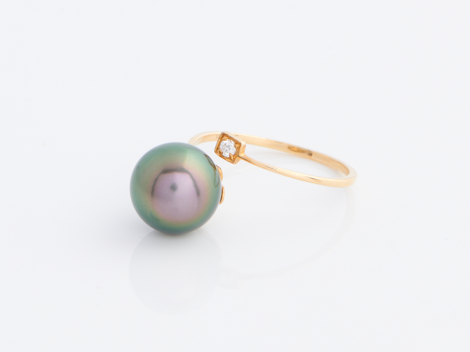 A TAHITIAN PEARL AND DIAMOND RING IN 18CT GOLD, THE PEARL APPROXIMATELY 10MM, RING SIZE N