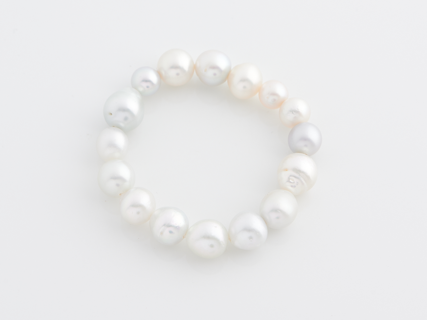 AN AUSTRALIAN WHITE SOUTH SEA PEARL BRACELET TO AN ELASTIC BAND, THE PEARLS MEASURE APPROXIMATELY 9MM - 13MM