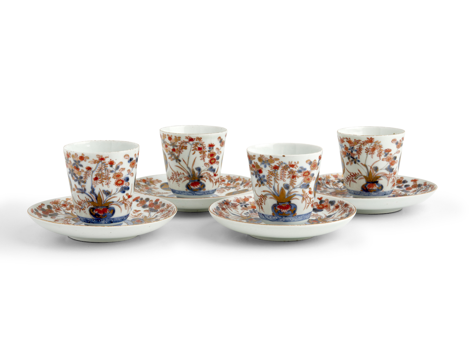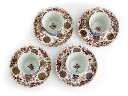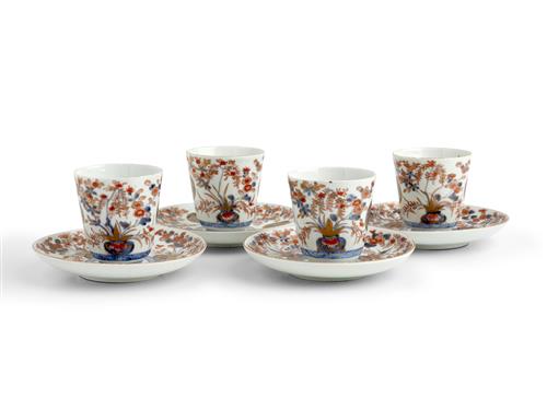 Decorated in Imari style with peony mons between flower vases, in underglaze blue, iron red and gilding.