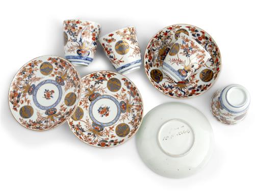 Minor wear to the gilding on each. One dish with a chip to the rim, another with a hairline crack.