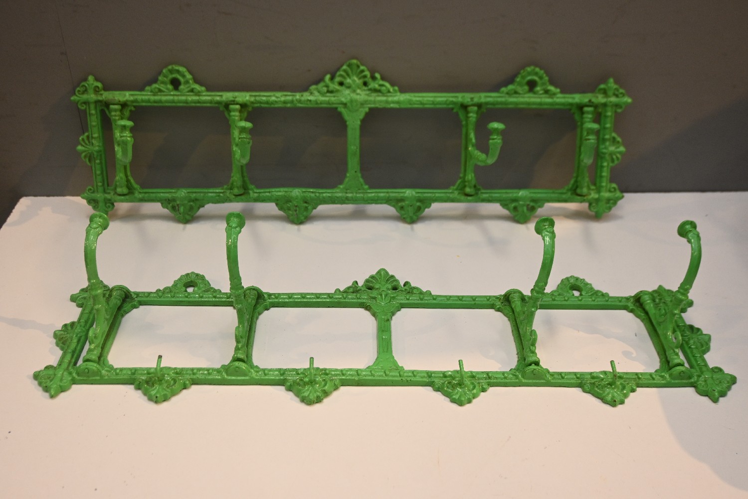 A PAIR OF GREEN METAL WALL HOOKS (17H X 62W CM) (LEONARD JOEL DELIVERY SIZE: MEDIUM)