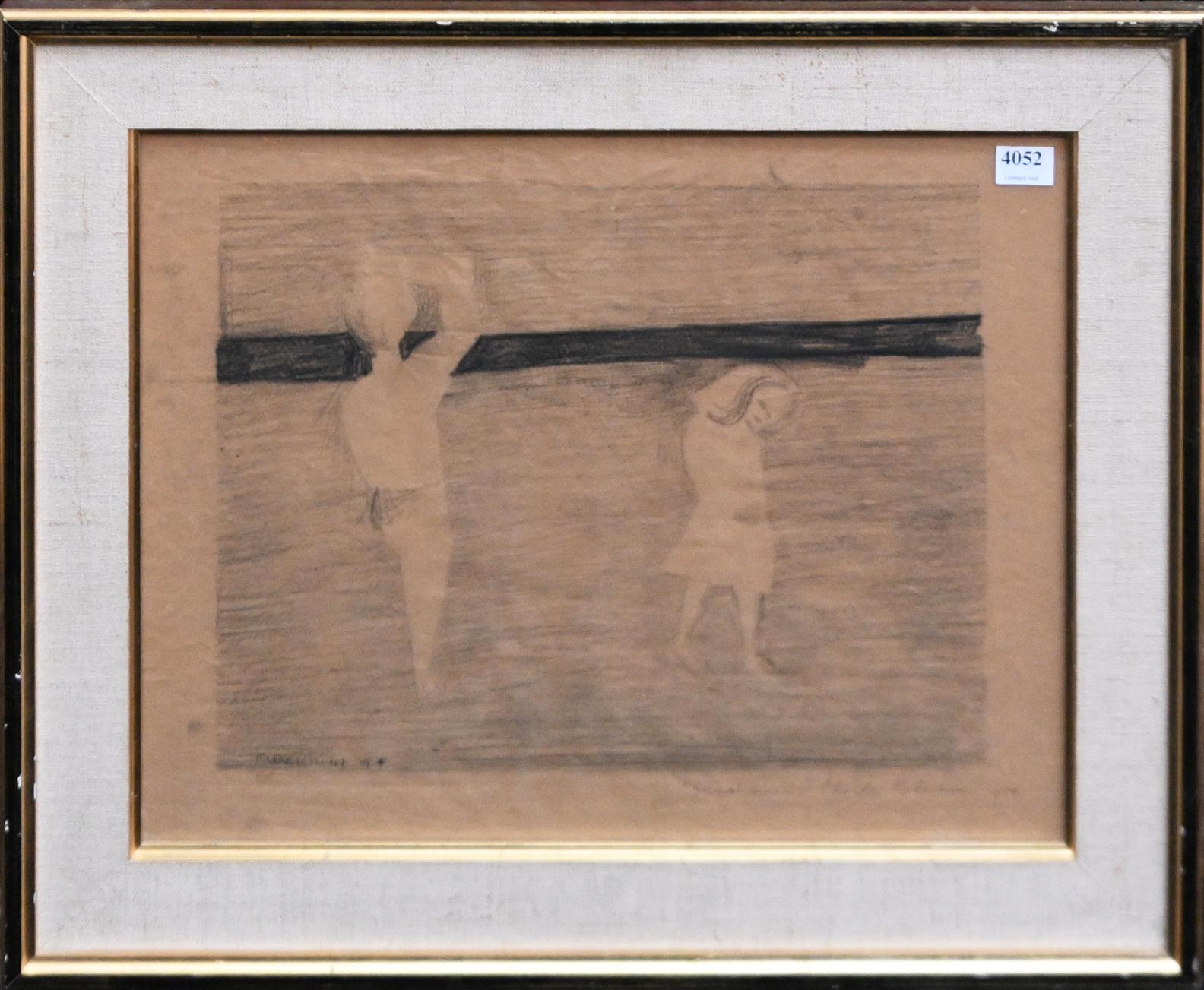 CHARLES BLACKMAN, SEASHORE 1954, CHARCOAL ON PAPER, SIGNED, TITLED AND DATED BELOW IMAGE, 26 X 34CM (IMAGE), FRAME SIZE: 44 X 52.5CM