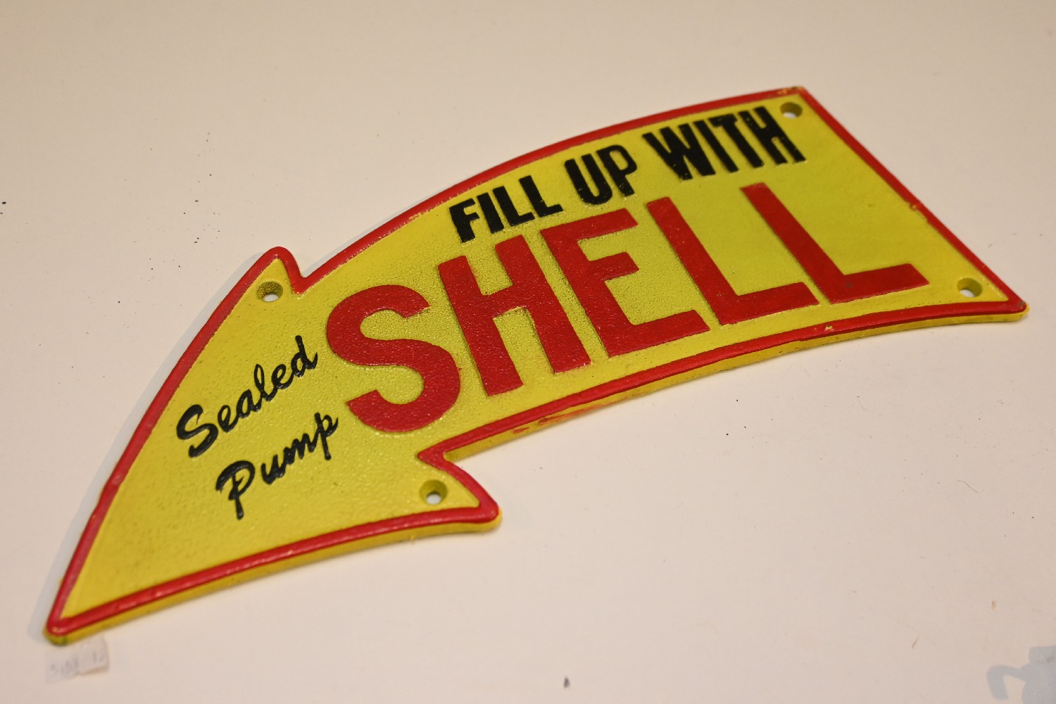 A METAL SHELL WALL SIGN (20H X 40W CM) (LEONARD JOEL DELIVERY SIZE: SMALL)