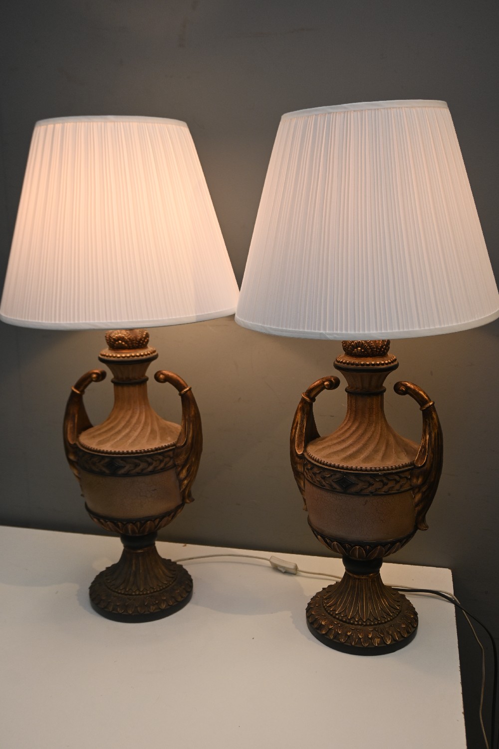 A PAIR OF FRENCH STYLE GILT EFFECT TABLE LAMPS (90H X 41D CM) (LEONARD JOEL DELIVERY SIZE: LARGE)