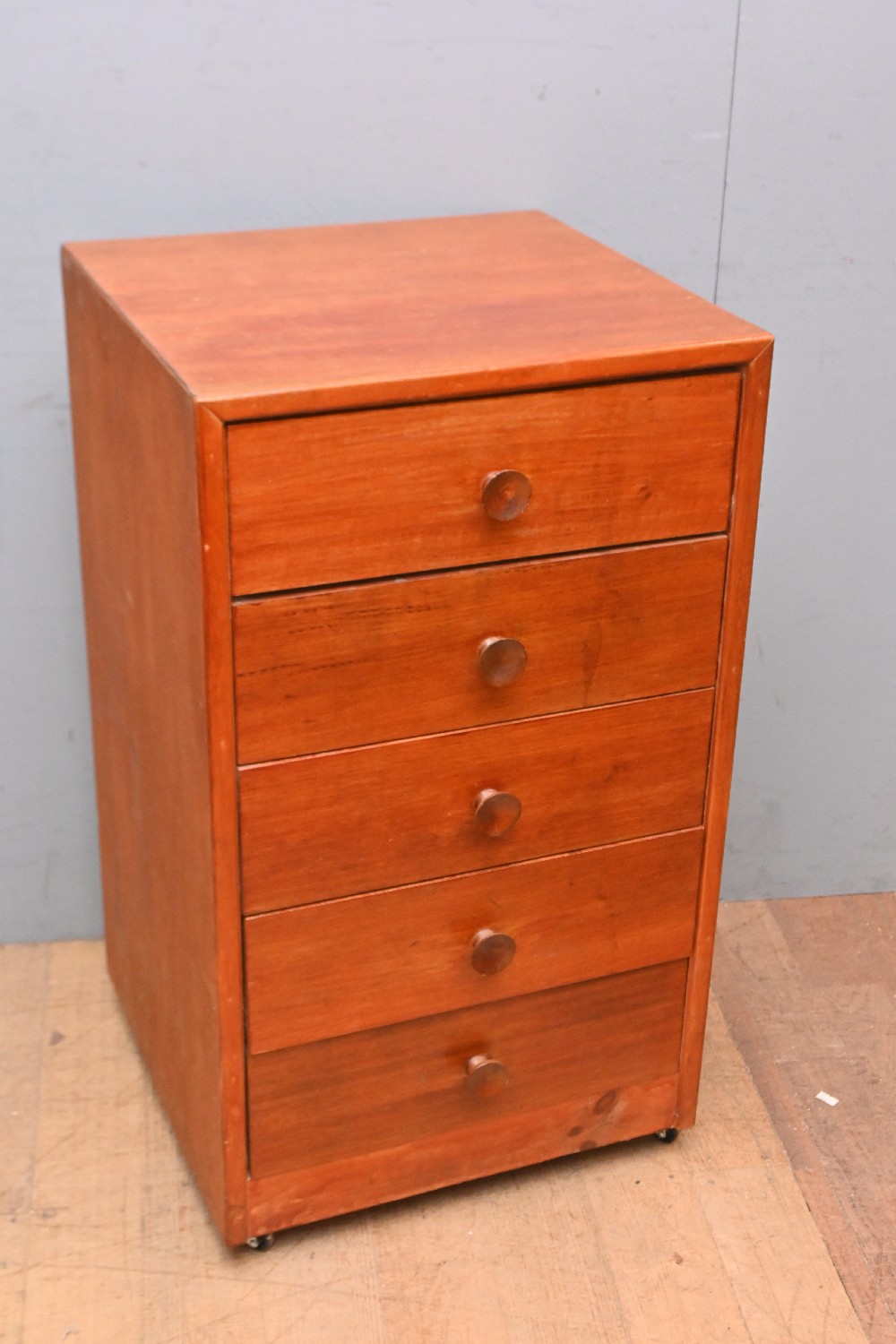 A 1970S FIVE DRAWER CHEST (A/F) (85H X 48W X 46D CM) (LEONARD JOEL DELIVERY SIZE: LARGE)