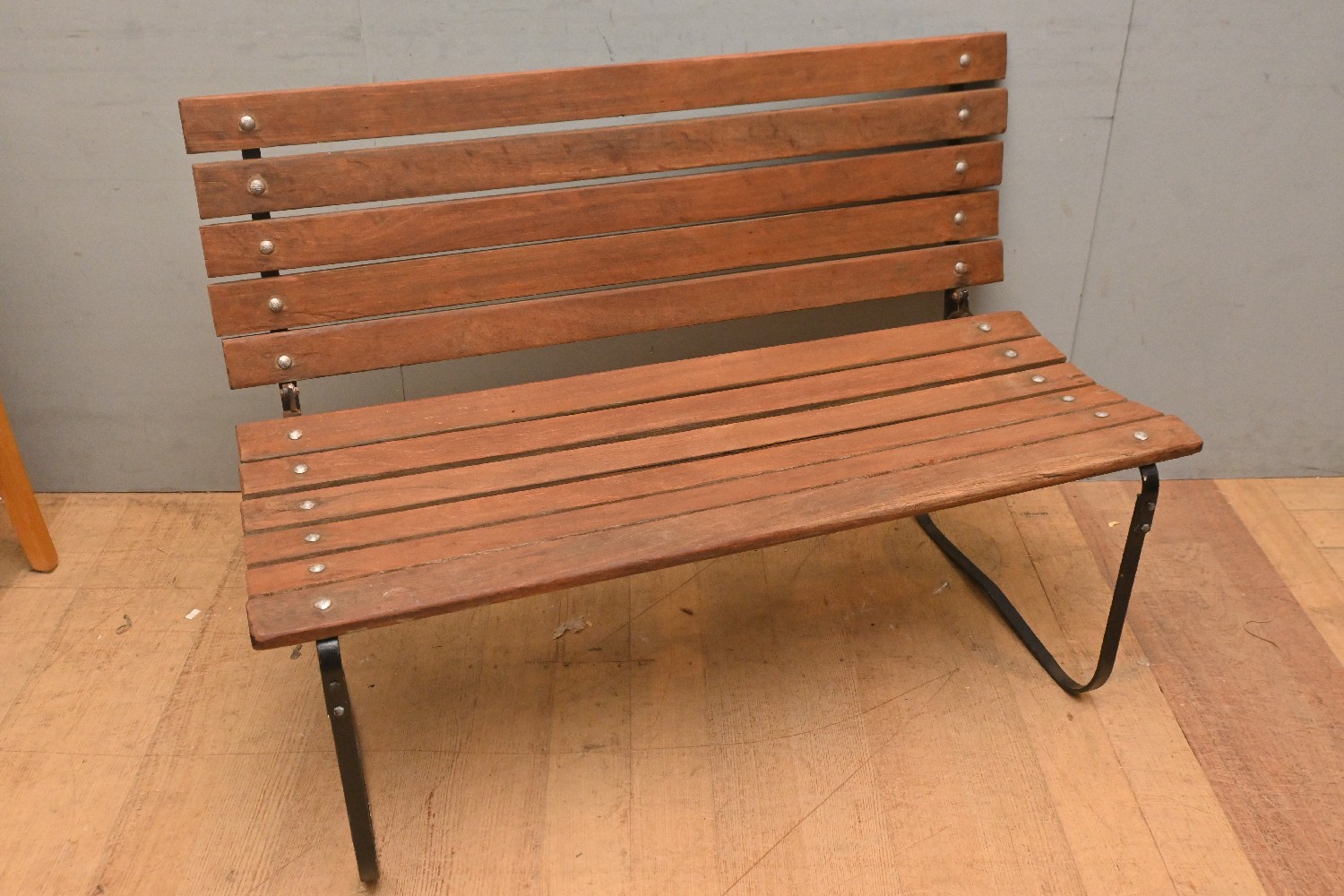 A METAL & TIMBER OUTDOOR BENCH (A/F) (80H X 114W X 61D CM) (LEONARD JOEL DELIVERY SIZE: X-LARGE)