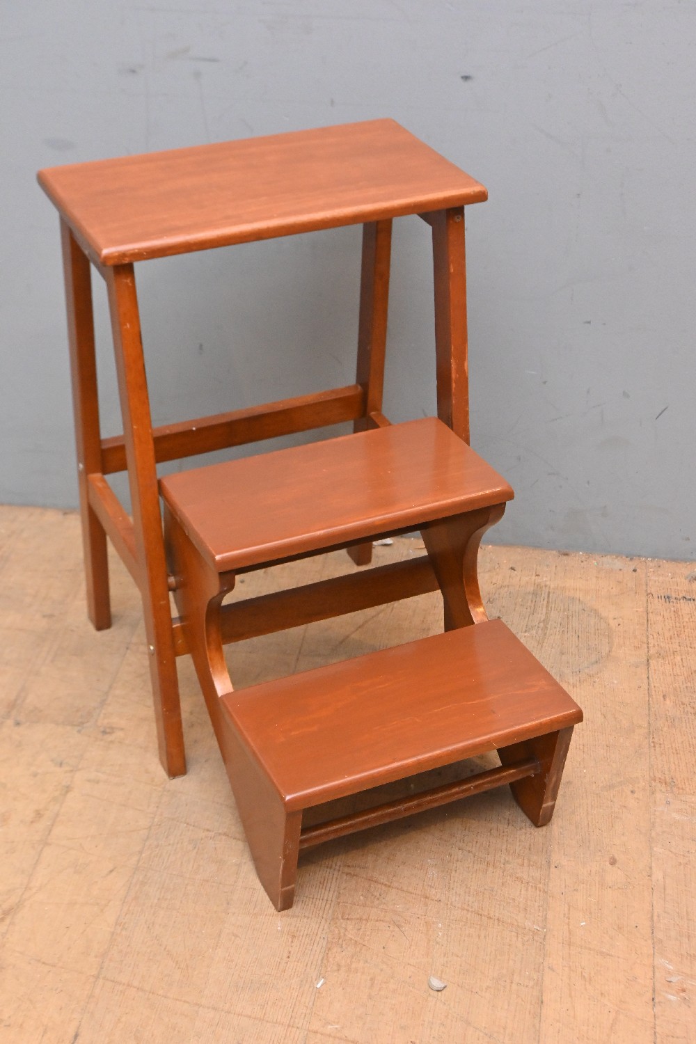 A HARDWOOD FOLDING STOOL / SET OF STEPS (A/F) (62H X 42W X 62D CM) (LEONARD JOEL DELIVERY SIZE: LARGE)