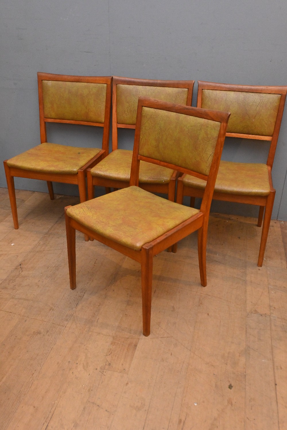 A SET OF FOUR 1950'S/60'S TEAK & VINYL DINING CHAIRS (84HX 50W X 45D CM) (LEONARD JOEL DELIVERY SIZE: X-LARGE)