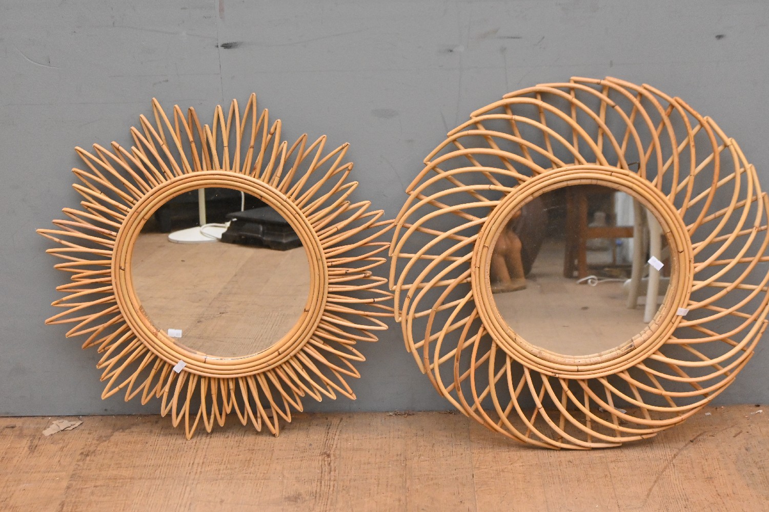 TWO BENT CANE-FRAMED MIRRORS (60D CM) (LEONARD JOEL DELIVERY SIZE: MEDIUM)