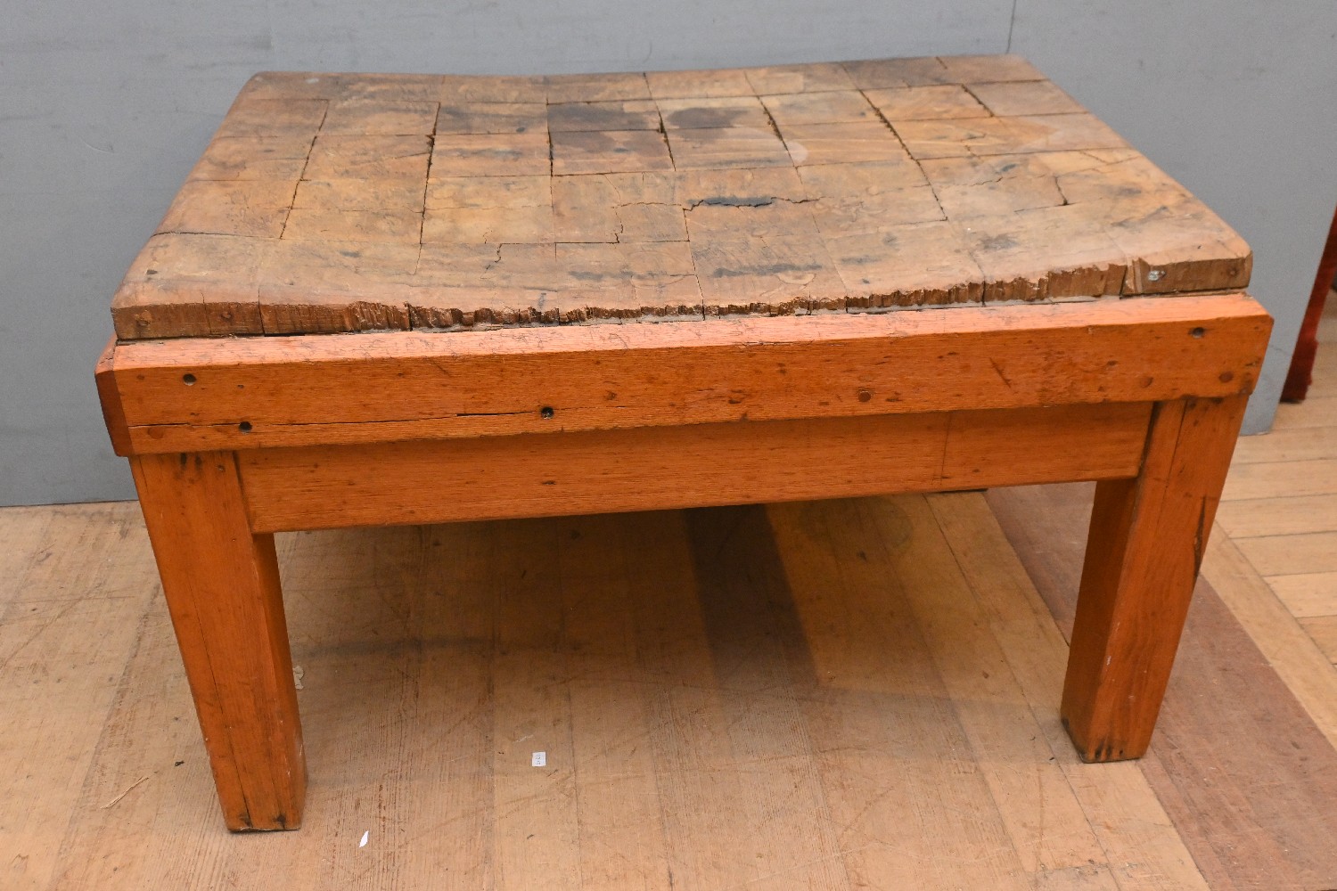 AN EARLY 20th CENTURY HARDWOOD BUTCHER'S BLOCK (76H X 121W X 78D CM) (PLEASE NOTE THIS HEAVY ITEM MUST BE REMOVED BY CARRIERS AT THE CUSTOMER'S EXPENSE. LEONARD JOEL STAFF CANNOT ASSIST CARRYING THIS ITEM) (X-LARGE ITEM)