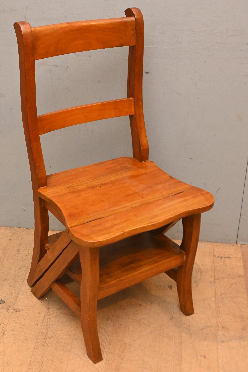 A SOLID MAHOGANY METAMORPHIC LIBRARY STEP/CHAIR (88H X 45W X 45D CM) (LEONARD JOEL DELIVERY SIZE: LARGE)