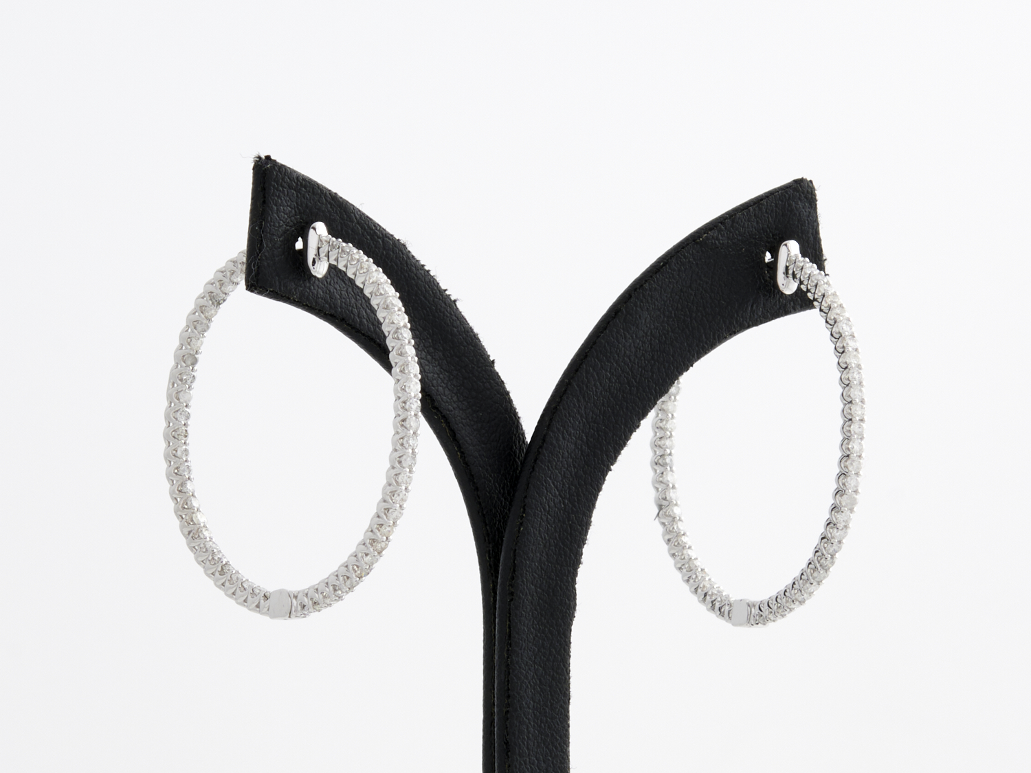 A PAIR OF DIAMOND EARRINGS IN 18CT WHITE GOLD, THE DIAMONDS TOTALLING 1.75CTS, TO POST AND SCREW BACK FITTINGS