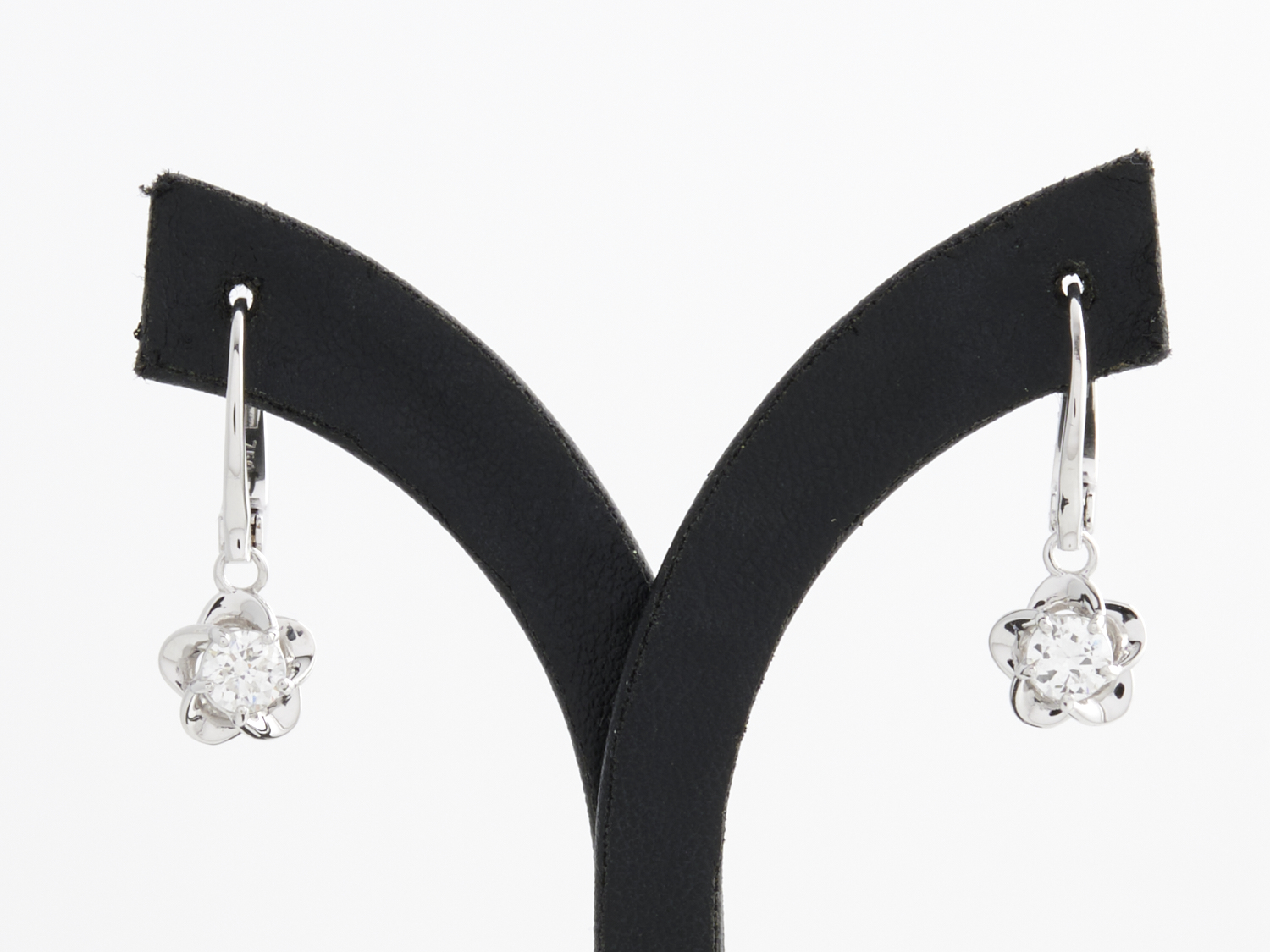 A PAIR OF DIAMOND EARRINGS IN 18CT WHITE GOLD, TO POST AND LEVER BACK FITTINGS, THE DIAMONDS TOTALLING 0.90CTS