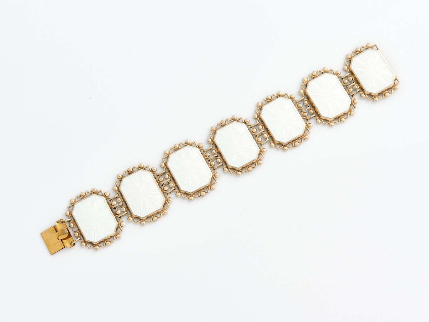 NORDLIC, A VINTAGE NORWEGIAN GILT ENAMELLED BRACELET IN SILVER GILT, 80MM