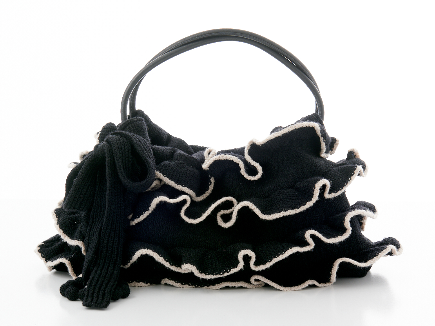 SONIA RYKIEL, A HANDBAG STYLED IN BLACK AND WHITE WOOL BLEND KNIT, CIRCA 2008, 45 X 25 X 10CM, ACCOMPANIED BY ORIGINAL DUST BAG