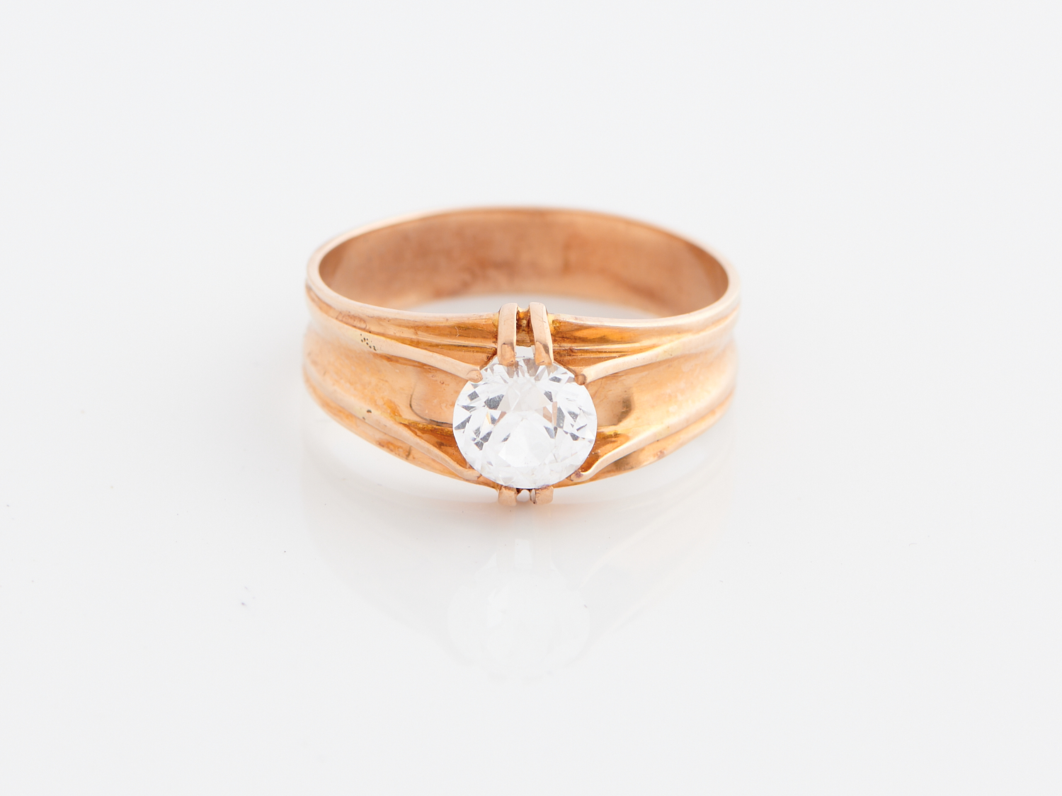 A ZIRCON RING IN 15CT GOLD, SIZE S, 3.8GMS