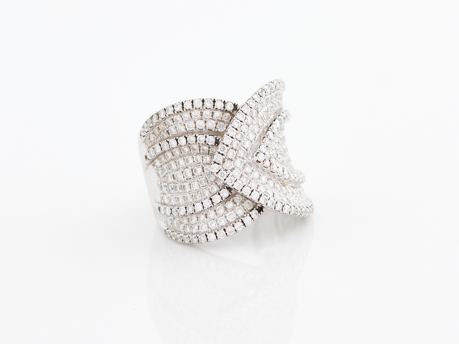 A DIAMOND DRESS RING IN 18CT WHITE GOLD, SIZE O, 14.7GMS