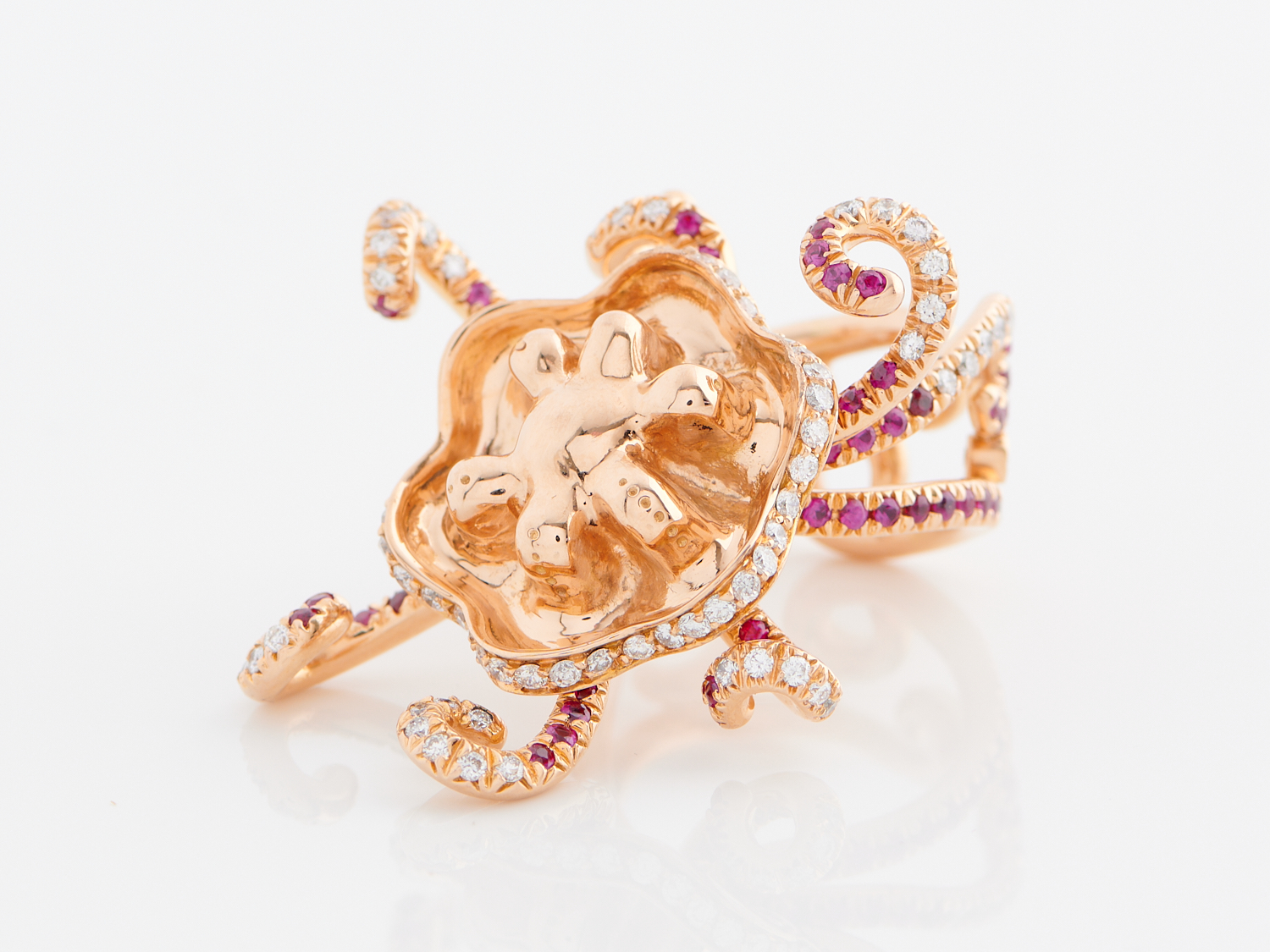 CHANTECLER CAPRI, A DIAMOND AND RUBY RING IN 18CT ROSE GOLD, WITH MOVING FEATURES, DIAMONDS TOTALLING APPROXIMATELY 1.50CT, RUBIES TOTALLING 1.00CT, SIZE L, 25.0GMS, ACCOMPANIED BY A VALUATION