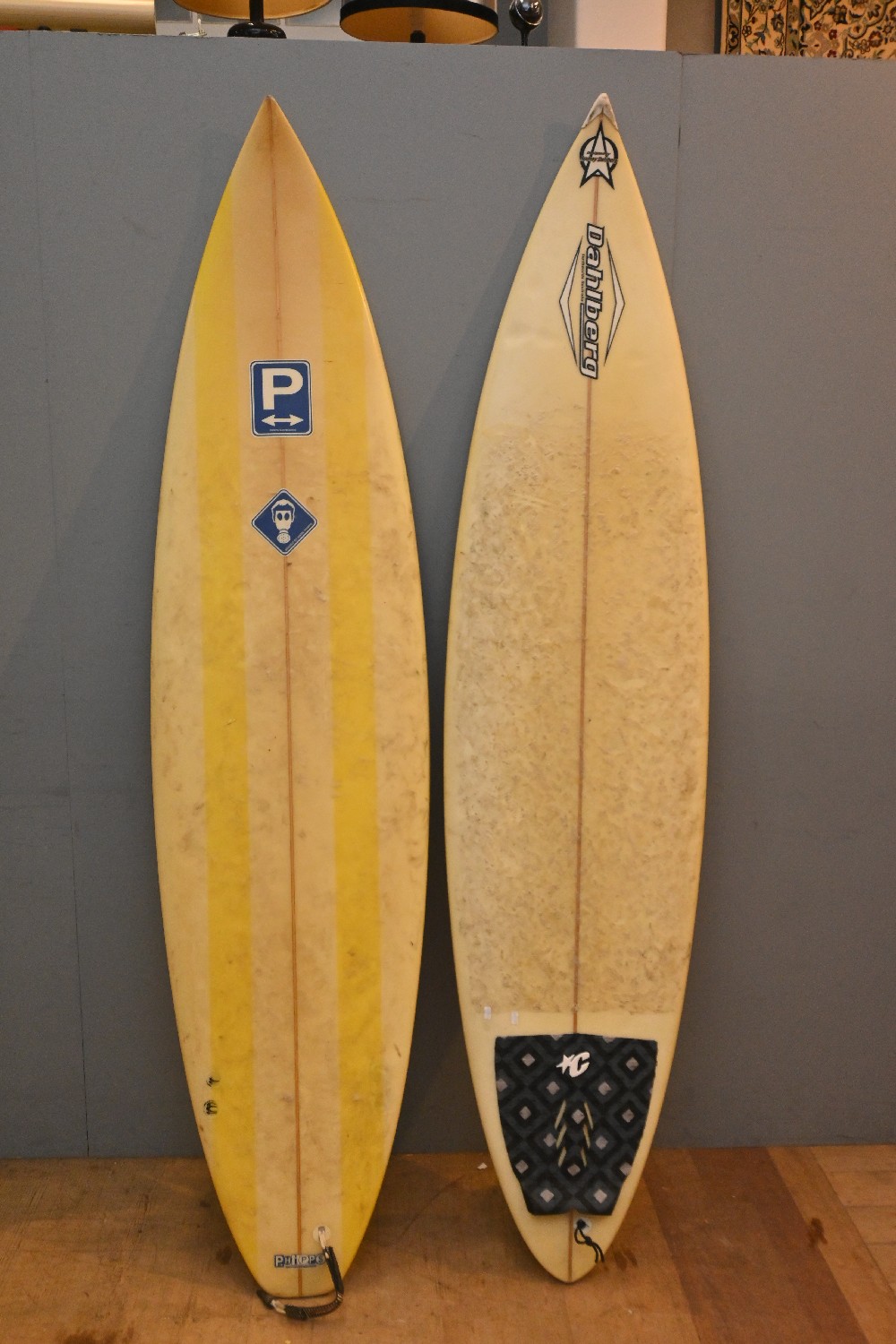 TWO OLD SURFBOARDS, BY MARK PHIPPS AND DAHLBERG (207H X 47W CM) (LEONARD JOEL DELIVERY SIZE: X-LARGE)