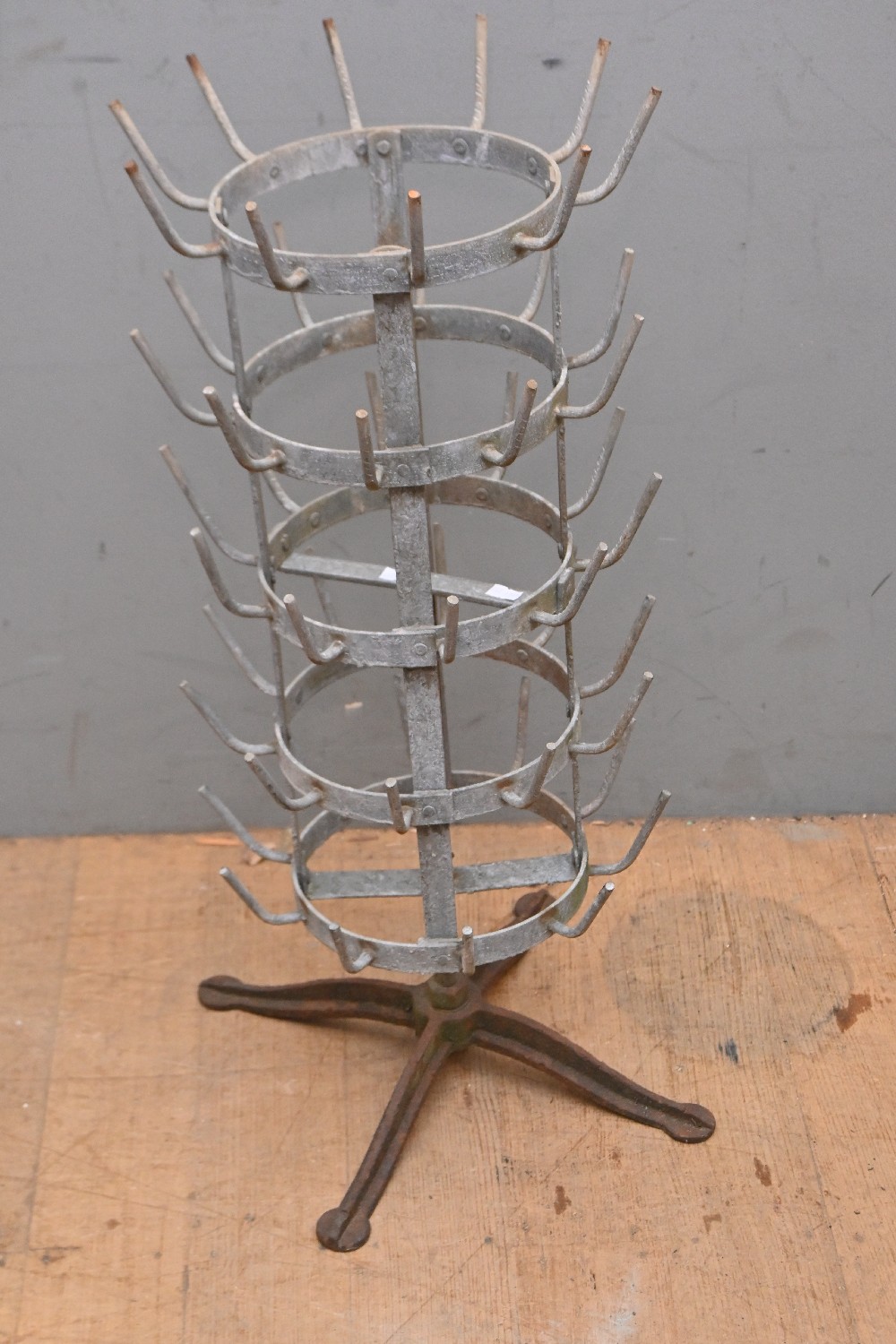 A ROTATING ZINC BOTTLE RACK, INSPIRED BY THE DESIGN BY MARCEL DUCHAMP (75H X 32D CM) (LEONARD JOEL DELIVERY SIZE: LARGE)