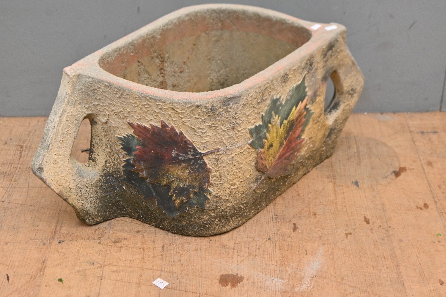 A CONCRETE POT WITH HANDLES (A/F) (32H X 73W X 40D CM) (PLEASE NOTE THIS HEAVY ITEM MUST BE REMOVED BY CARRIERS AT THE CUSTOMER'S EXPENSE. LEONARD JOEL STAFF CANNOT ASSIST CARRYING THIS ITEM) (X-LARGE ITEM)