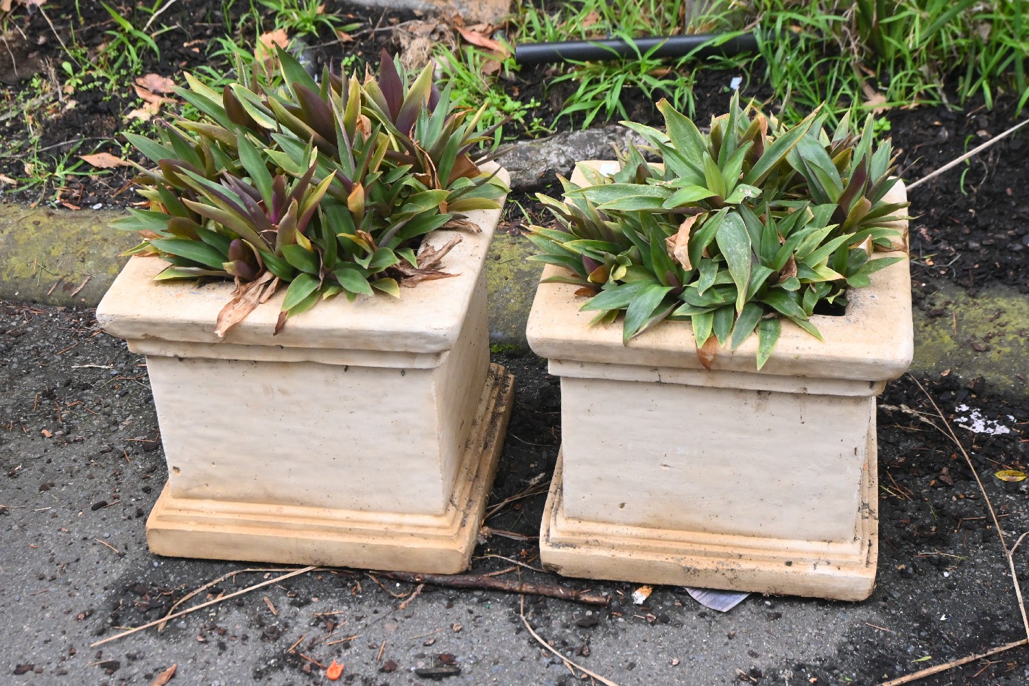 A PAIR OF CONCRETE POTS WITH PLANTS (40H CM) (LEONARD JOEL DELIVERY SIZE: X-LARGE)