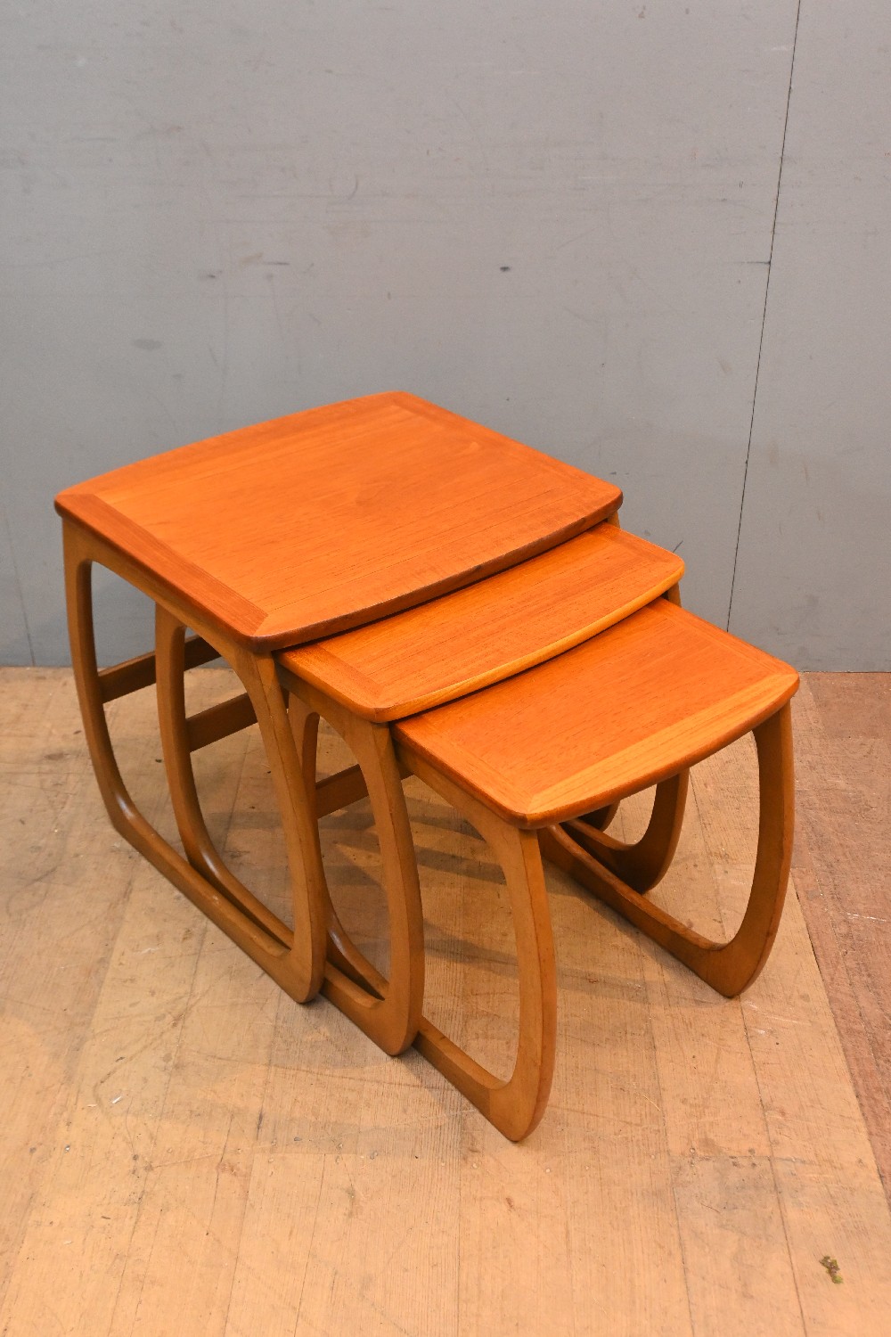 A NEST OF THREE NATHAN TEAK SIDE TABLES (51H X 52W X 48D CM) (LEONARD JOEL DELIVERY SIZE: X-LARGE)