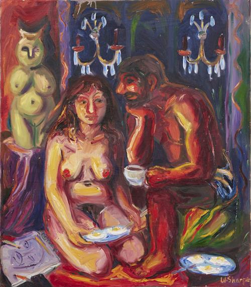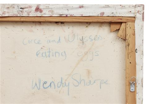 signed and titled verso: Circe and Ulysses / eating eggs / Wendy Sharpe