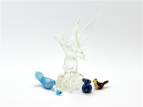 FIVE ART GLASS ANIMALS INCLUDING A MURANO SEAGULL H.36.5CM (TALLEST), LEONARD JOEL DELIVERY SIZE: MEDIUM