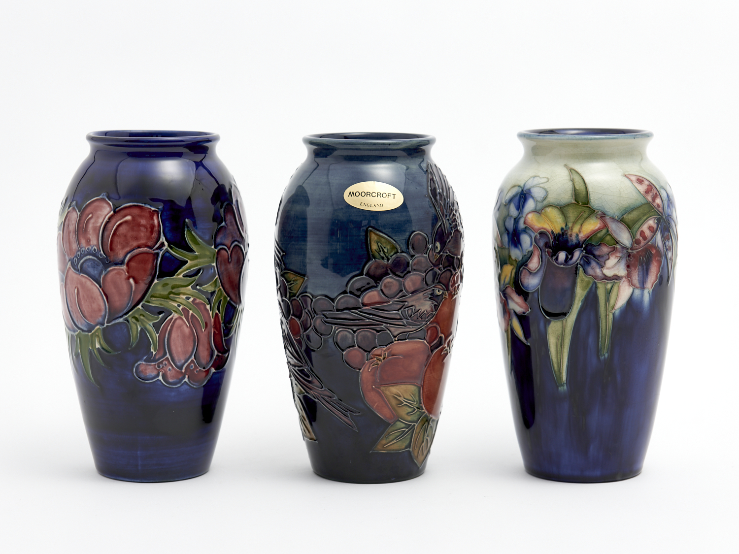 THREE MOORCROFT VASES H.19CM, LEONARD JOEL DELIVERY SIZE: MEDIUM