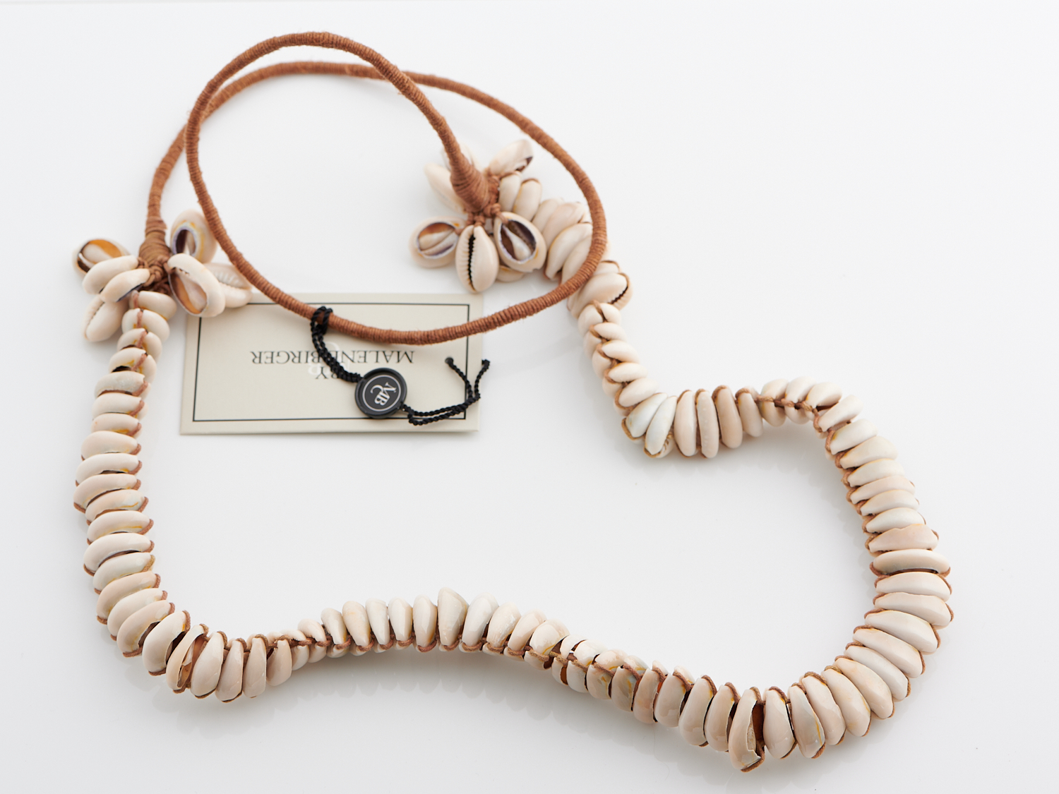 BY MALENE BIRGER, A LONG SHELL NECKLACE, TO A NATURAL FIBRE CORD, BOXED
