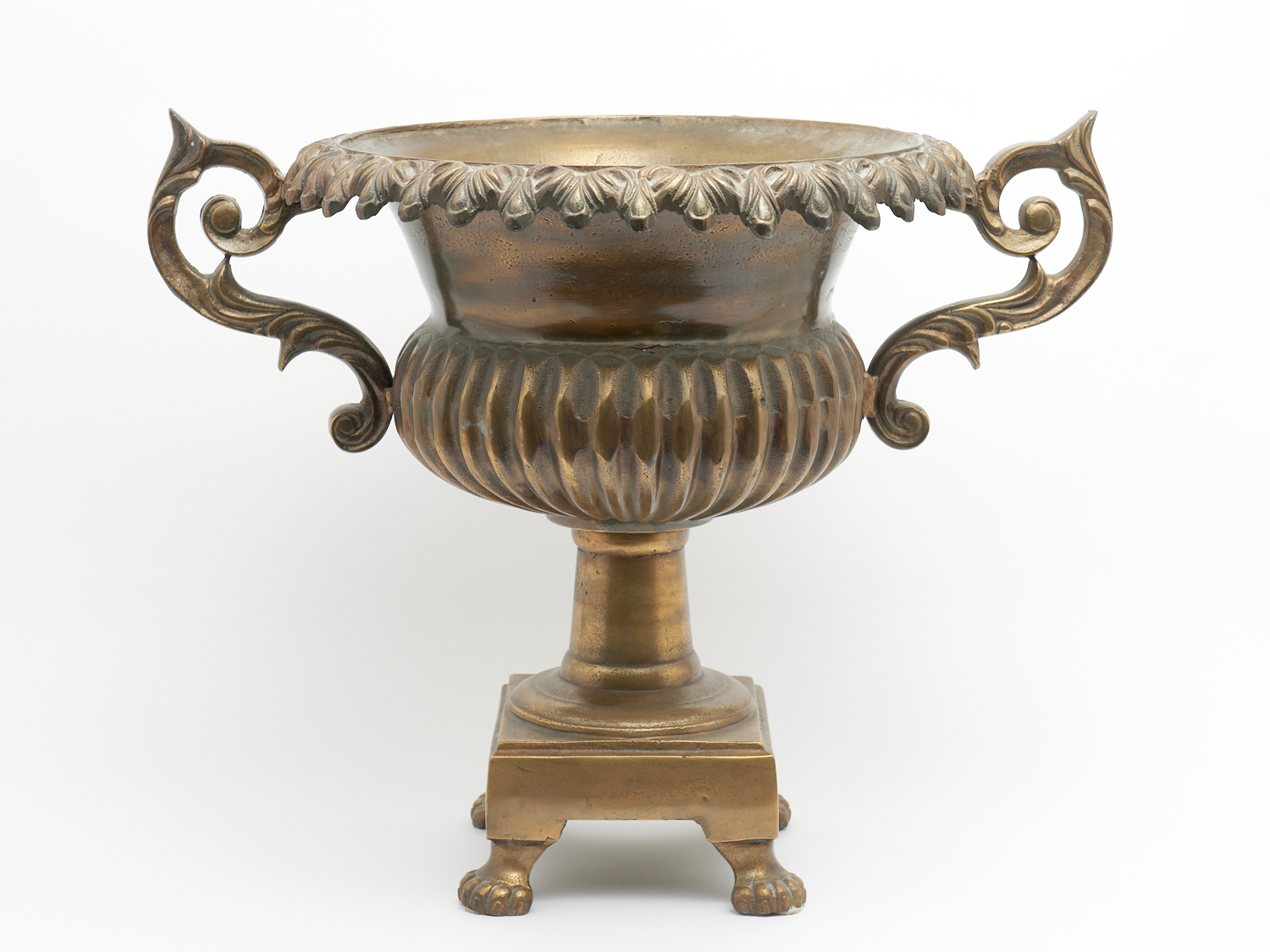 A BRONZE CAMPAGNA-FORM TWO HANDLED URN H.50CM, LEONARD JOEL LOCAL DELIVERY: LARGE