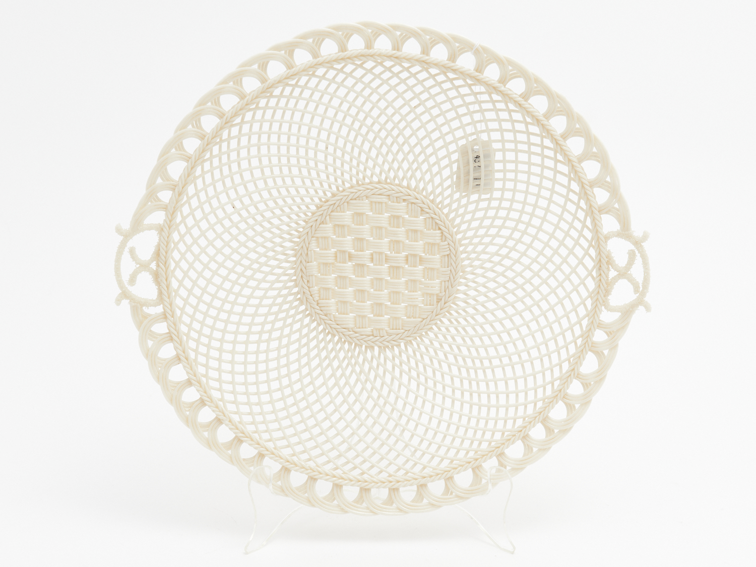 A BELLEEK LATTICE WORK PLATE DIA.26CM, LEONARD JOEL DELIVERY SIZE: MEDIUM
