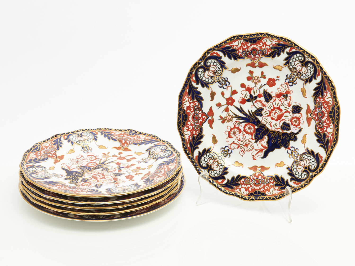 SIX ROYAL CROWN DERBY KINGS IMARI PATTERN PLATES (ONE SMOOTH EDGED) DIA.22.5CM, LEONARD JOEL LOCAL DELIVERY: SMALL