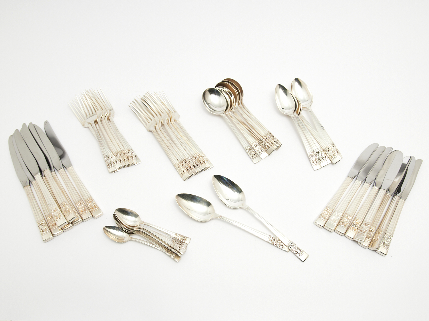A COMMUNITY PLATE HAMPTON COURT PATTERN CUTLERY SERVICE FOR EIGHT L.23.5CM (LONGEST), LEONARD JOEL DELIVERY SIZE: SMALL