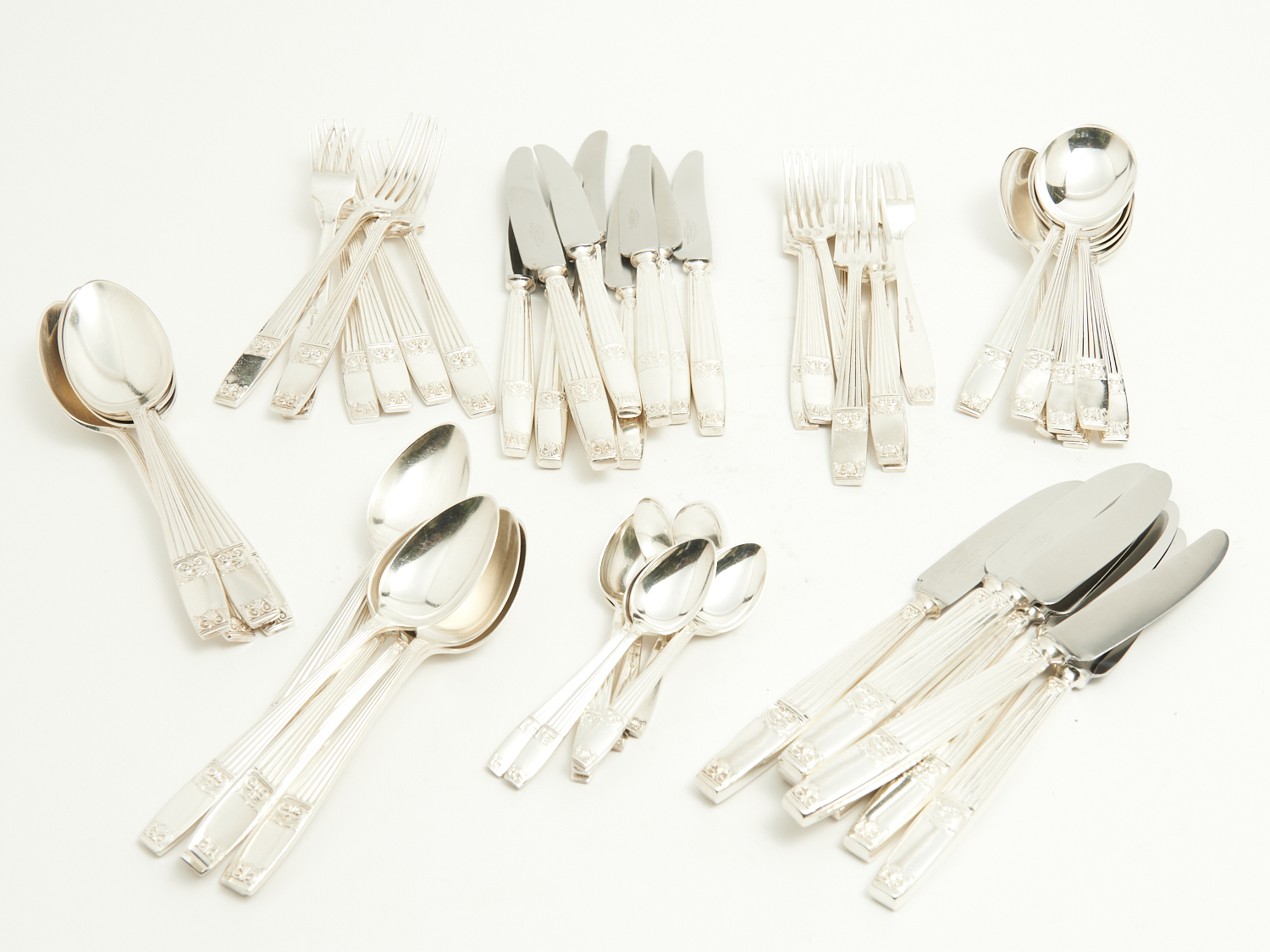 A SILVER PLATE ELKINGTON WESTMINSTER PATTERN CUTLERY SERVICE FOR EIGHT L.24CM (DINNER KNIFE), LEONARD JOEL LOCAL DELIVERY: SMALL