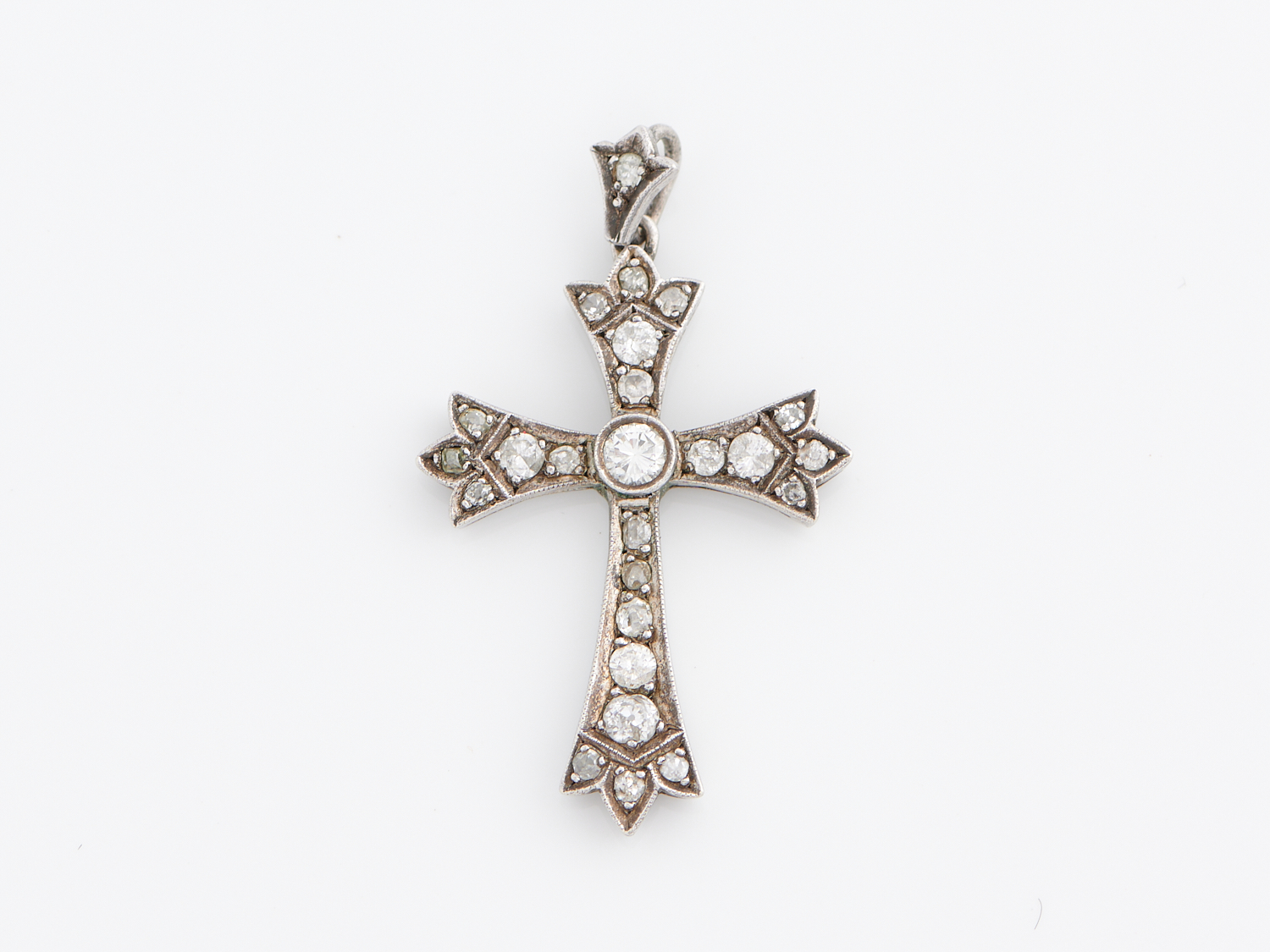 A DIAMOND SET CROSS IN SILVER, 32 X 24MM