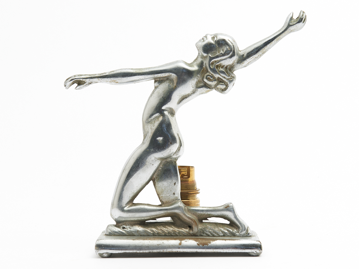 AN ART DECO CHROMED METAL FIGURAL DESK LAMP (NEEDS REWIRING) H.18CM, LEONARD JOEL LOCAL DELIVERY: SMALL