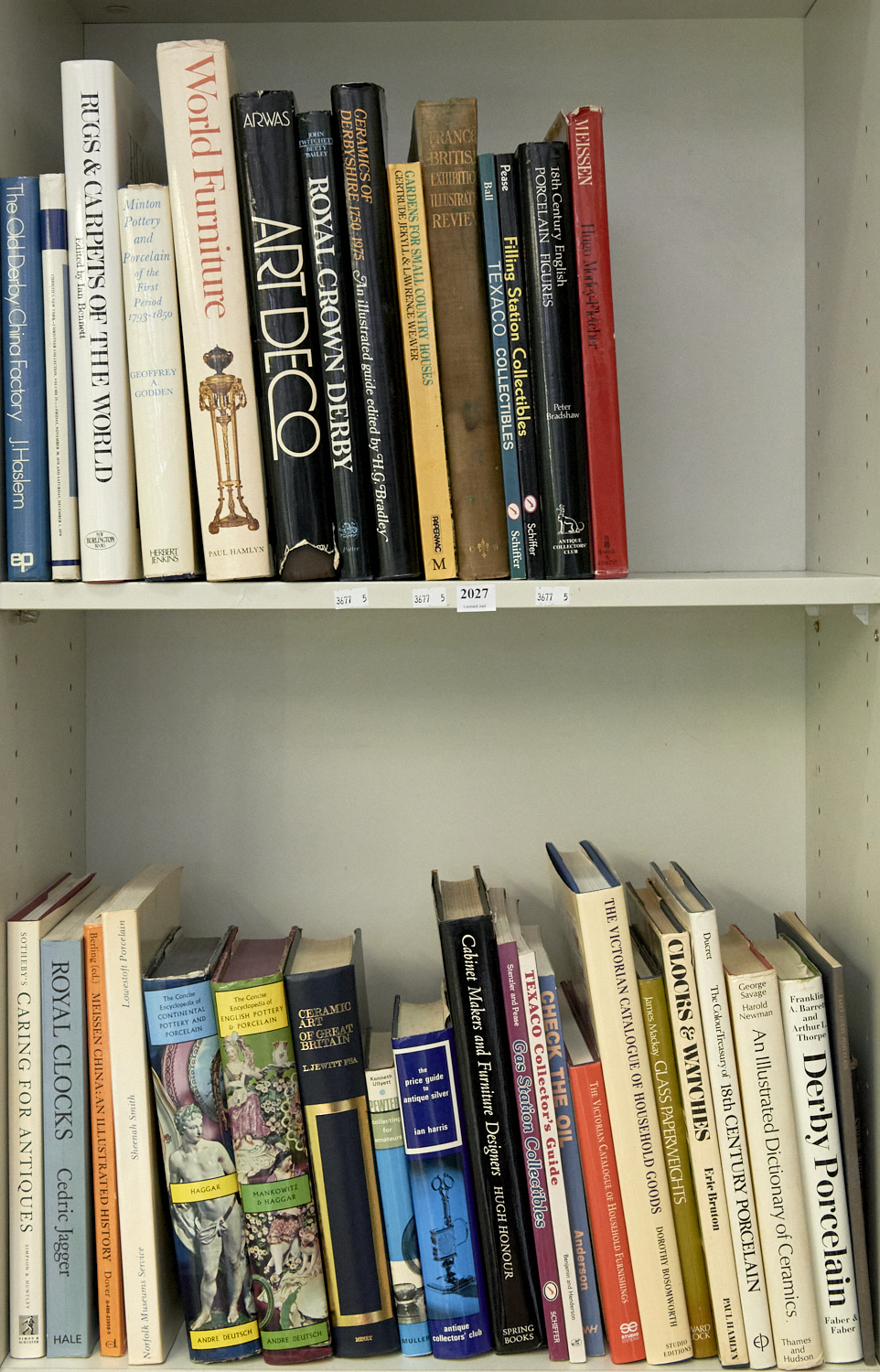 TWO SHELVES OF ANTIQUE REFERENCE BOOKS, LEONARD JOEL DELIVERY SIZE: LARGE