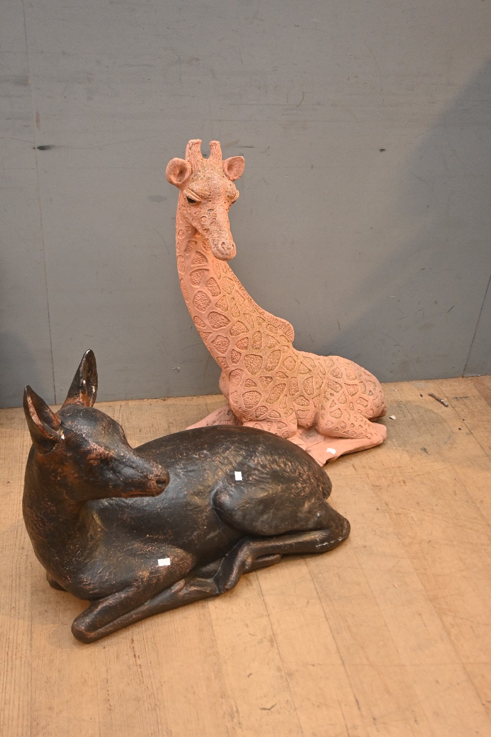 TWO VINTAGE CONCRETE & CAST IRON GARDEN ANIMALS (77H X 66W CM) (PLEASE NOTE THIS HEAVY ITEM MUST BE REMOVED BY CARRIERS AT THE CUSTOMER'S EXPENSE. LEONARD JOEL STAFF CANNOT ASSIST CARRYING THIS ITEM) (LARGE ITEM)
