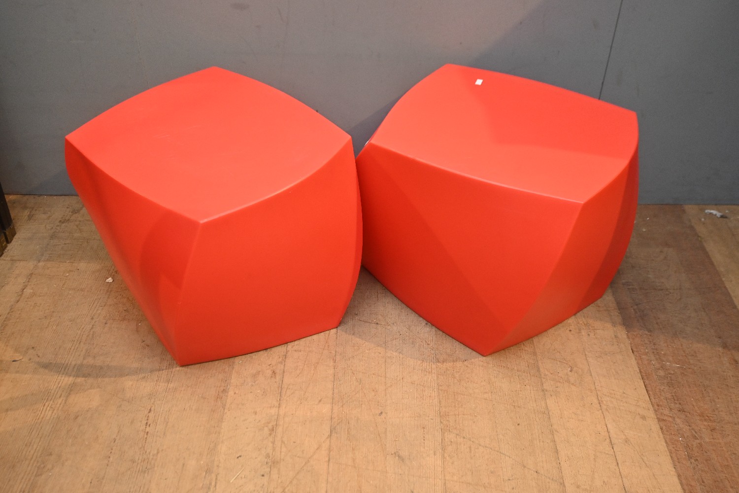 A PAIR OF FRANK GEHRY (HELLER-USA) "RIGHT TWIST STOOLS" (44H X 48W X 42D CM) (LEONARD JOEL DELIVERY SIZE: X-LARGE)