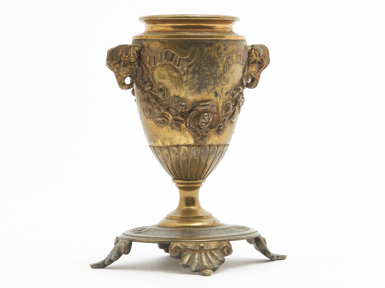 A SMALL GILT BRONZE CLASSICAL THEMED URN H.10.5CM, LEONARD JOEL LOCAL DELIVERY: SMALL