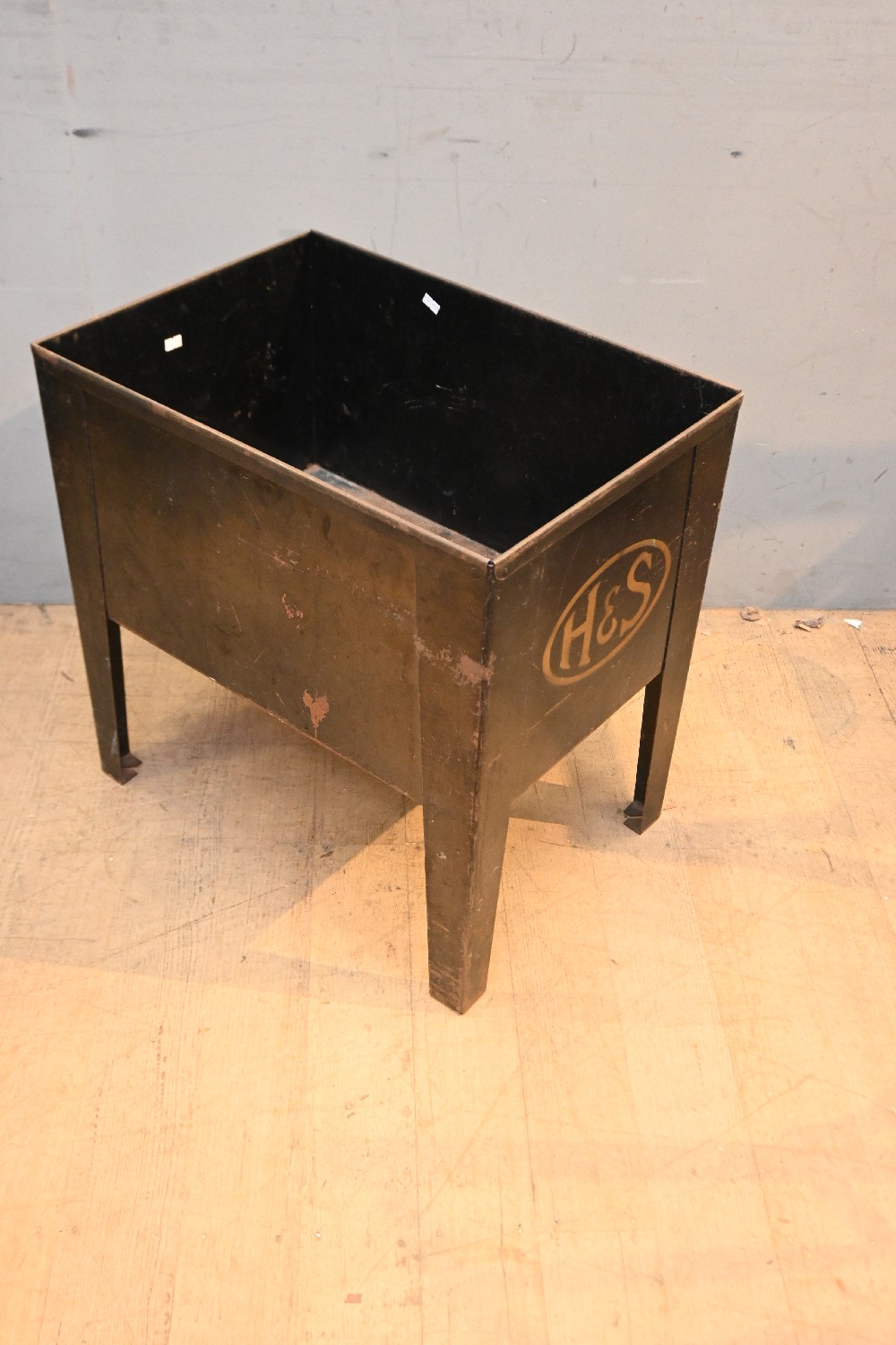 AN INDUSTRIAL H&S ADVERTISING METAL FOUR LEGGED CONTAINER (57H X 57W X 40D CM) (LEONARD JOEL DELIVERY SIZE: LARGE)