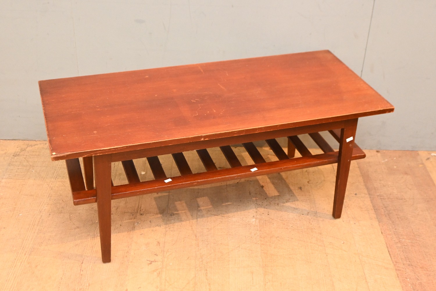 A DANISH TWO TIER RECTANGULAR COFFEE TABLE WITH ORIGINAL SLATTED LOWER SHELF (A/F) (5H X 107W X 47D CM) (LEONARD JOEL DELIVERY SIZE: LARGE)