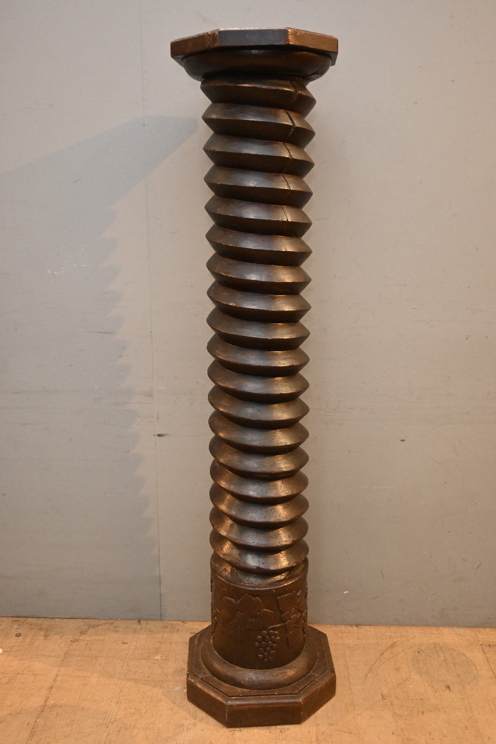 A 19TH CENTURY FRENCH MAHOGANY CARVED WINE PRESS SCREW PEDESTAL - REMNANTS OF OLD BORER (A/F) (169H X 36W X 36D CM) (PLEASE NOTE THIS HEAVY ITEM MUST BE REMOVED BY CARRIERS AT THE CUSTOMER'S EXPENSE. LEONARD JOEL STAFF CANNOT ASSIST CARRYING THIS ITEM) (LARGE ITEM)